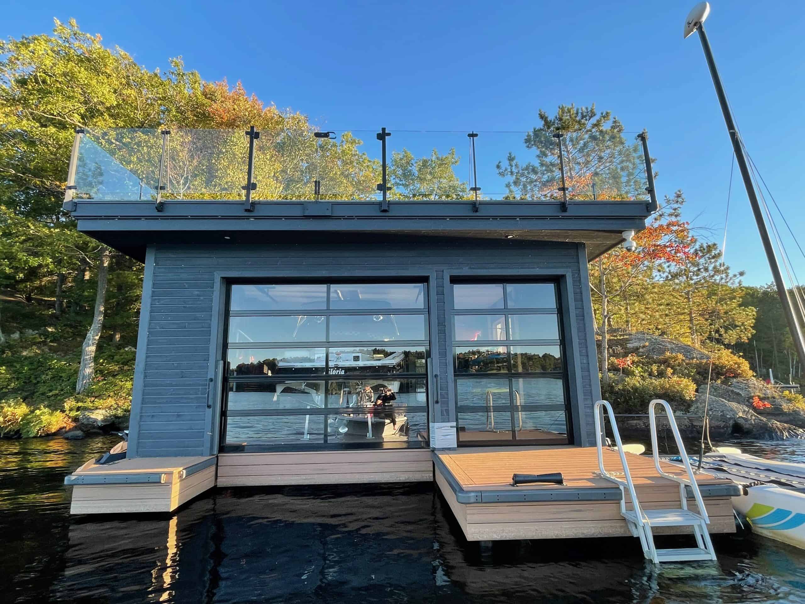 There are boathouses, and then there are boathouses like this. Every inch of this single bay boathouse was well thought out and designed with care to store all of the toys for summer fun on Kahshe. As project managers, Brian McAulay Construction, brought all of the talented, local trades to work on this project including the construction of the extensive steel crib and dock, custom electric boat lift with composite flooring, and the other required features including glass paneling and more. It is a perfect addition to a family compound.